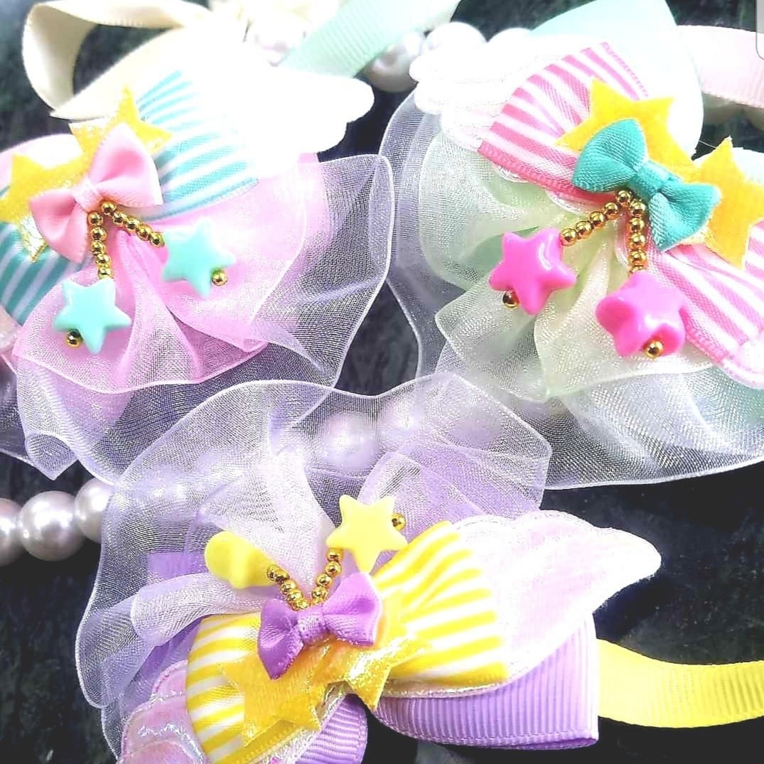 ドッグウェアのみではなく、トリマーさんに大人気の可愛いヘアゴムなどのアクセサリ類も取り揃えてます。