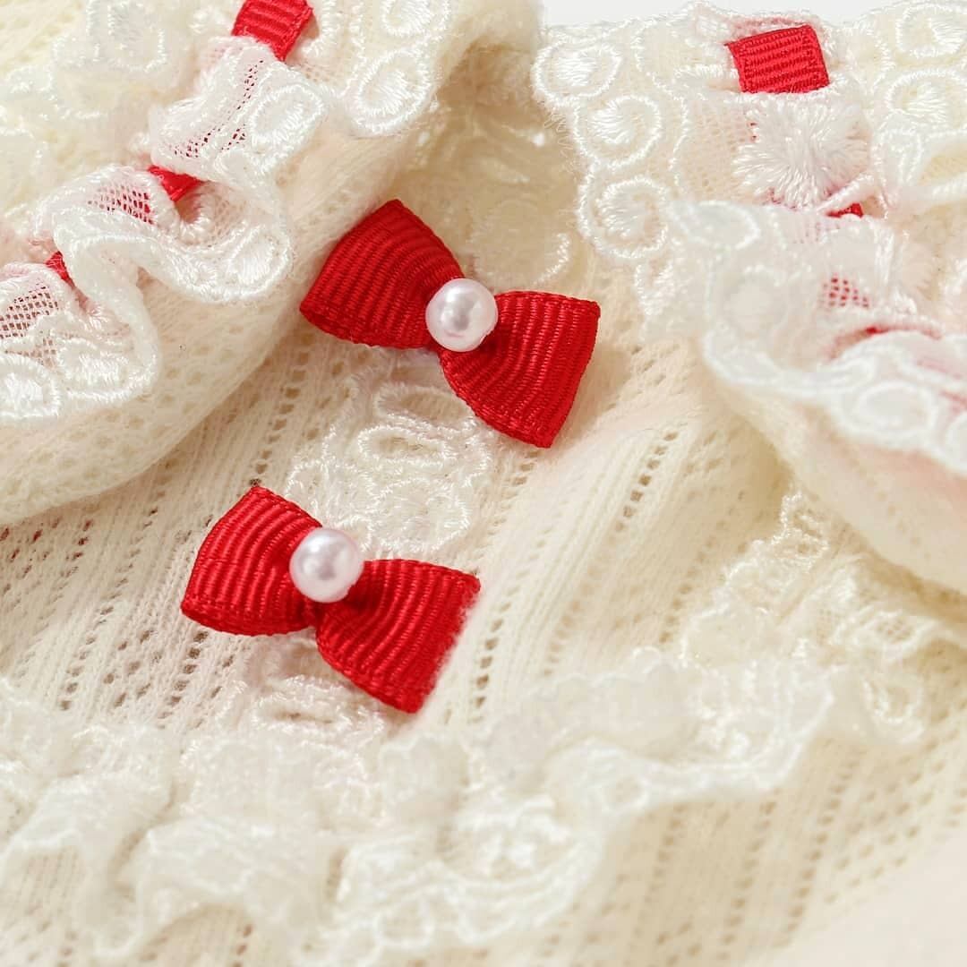 襟、裾、袖にレースフリルをふんだんにデコして、360度どこから見てもかわいいを叶えるスタイルにメイクアップ ♡